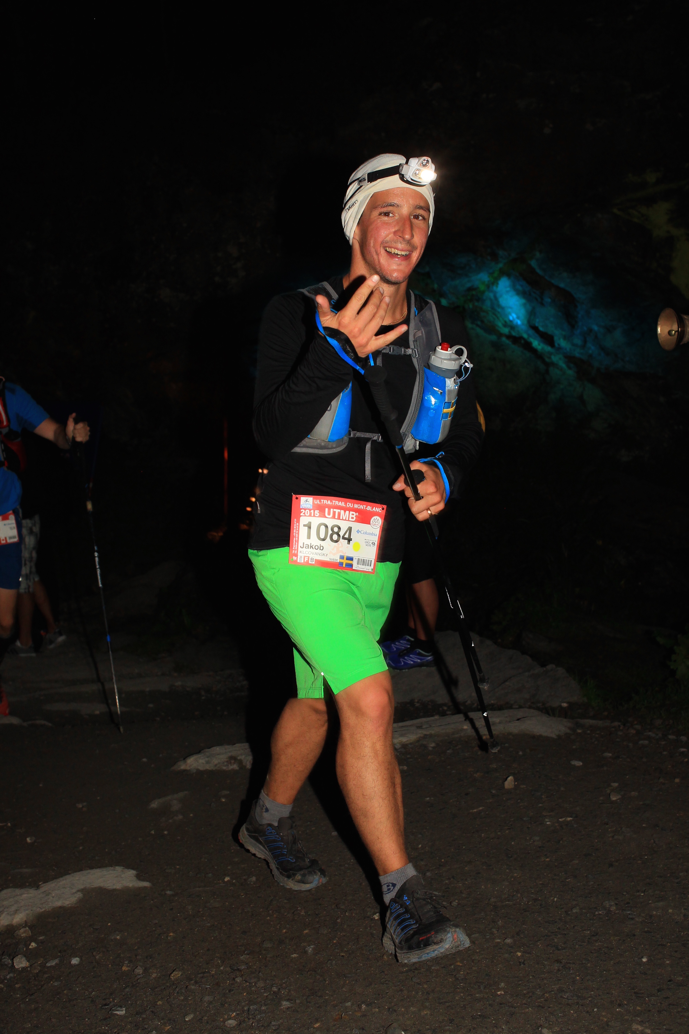But after only a minute or two I started freezing and my teeth started to chatter, so I had to move into the accursed sunlight again. I was this close to abandoning the race right there, but decided to give myself a chance to rest for an hour before heading on. I had gotten that much headstart, at least, that I didn’t have to worry about the cutoff time anytime soon. When I continued, it felt as if I hadn’t rested at all and both my head and my body were cursing at me for not staying where I was and simply give up. This sounds as though it’s taken from a bad Hollywood movie, but I refused to abandon and walked on, up the gravel road. My head had cleared a bit and I was hoping to reach Passeur de Pralognan at 2 567 m before nightfall, but I just missed the last daylight on my climb up to the top and had to stop in order to shrug into my windjacket. I’d regained enough of my wits to realize that I was just then having the privilege of climbing a marvellous, but dangerously sheer cliff face with a phenomenal view of the valley we had only just left behind us. I sat down several times during the climb and had to rummage around in my pack for my headlight before I reached the top. There a grey-bearded race official gently but firmly gestured for me to grab my poles with one hand – for balance and to grab the ropes with my free hand – before attempting the steep descent on the other side of the ridge. As always, after nightfall, the view of the headlights bobbing steeply down the cliffside was surreal. Like little glow worms creeping down a hill. We were aided by ropes strung down the slope at regular intervals, and even though it was pretty steep, it still didn’t compare in the slightest to the panic-inducing drops of Tromsø Skyrace a few weeks back. But this part of the race made me realize that I didn’t have the strength left to safely finish the remaining kilometers to Chamonix, especially if there was more of this to come. The kilometers between Col de la Forclaz and the next checkpoint at Cormet de Roselend at 66,6 km dragged on forever. My pace had shrunken to a snail’s and I imagined that my ranking had plummeted like a stone since leaving Bourg St Maurice. I had already made up my mind to abandon at Cormet, and I picked up my dropbag before heading to the race officials to get my bib clipped and tag removed. At that point, I didn’t feel even the slightest bit of regret or disappointment. That came later. Right now, I only felt an enormous relief, justifying to myself that it would have been dangerous to continue and that I would have risked worse than the sunstroke I was suffering from. I boarded the bus for repatriation back to Chamonix and sent an sms to miss H, Panda and Teddy waiting back home in Oslo and to dad and Monika, waiting for me in Chamonix. And then I dozed off.