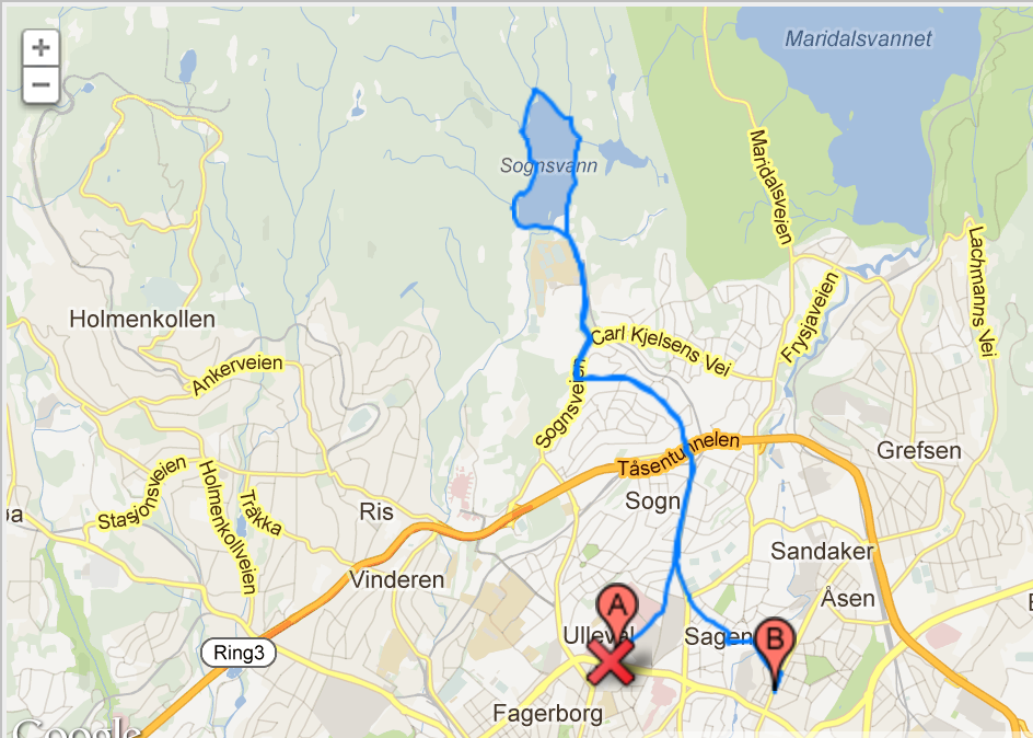 A is the hospital and B is home. Nope, didn’t run the fastest route.