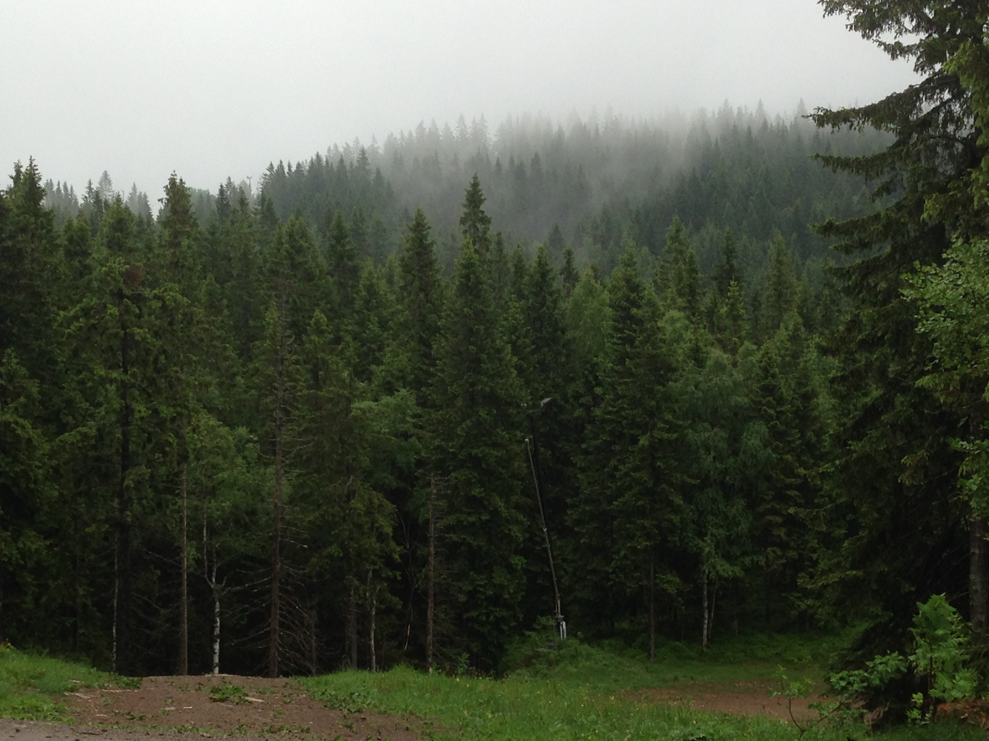 Last week during my top training period I managed to run 118 km and 2 300 vertical metres in seven days, stepping it down to around 70 km and 1 800 vertical metres for this week. I’ve been inspired by Jakob who’s working from Malta at the moment, and who’s told me about this stretch of road that climbs 200 metres in only 2 kilometres, and where he’s spent his long runs during the last month. The best place to do proper hill training here in Oslo is the skiing slope Wyllerløype in Sørkedalen, the venue for Oslos Bratteste in September. Since I wasn’t sure that my heel would survive four and five hours of planned long runs last week and this week, respectively, I decided to spend those long runs climbing the slope up and (trying to) run down as many times I could manage. The four-hour session started out with a less than inviting torrent of rain pounding the windshield of my car while driving into Sørkedalen. And then it got worse. It rained non-stop the entire evening and I was soaked even before I made it halfway for the first climb. Good training. You can never know how the weather will be in the Alps, and it could rain during the race as well. Even snow, in fact.